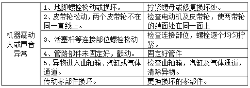 3. 經(jīng)常檢查三角膠帶的松緊度,如有過松或過緊現(xiàn)象均應(yīng)立即調(diào)整。 4. 經(jīng)常對(duì)軸承,十字頭部位進(jìn)行檢查,如有過熱現(xiàn)象應(yīng)及時(shí)進(jìn)行修理 5. 經(jīng)常檢查活塞桿的密封,如發(fā)現(xiàn)泄漏應(yīng)及時(shí)更換密封圈。