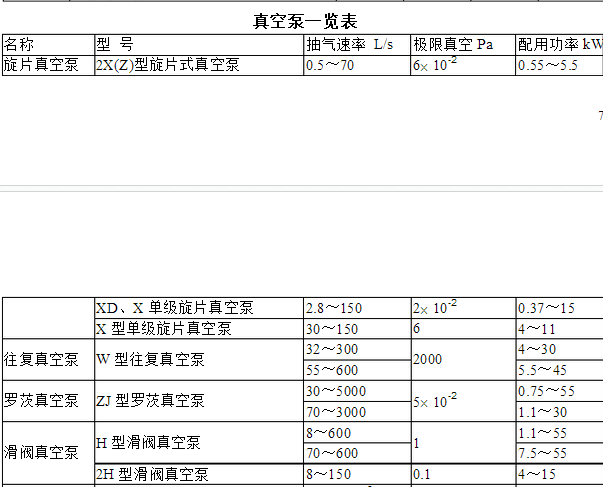 初步選定了泵的類型之后,對于真空泵,還要根據系統所需的氣量來選用泵的型號。 關于真空泵的抽速選擇及抽氣時間計算可參照我公司網頁面對各種型式的水環式真空泵及壓縮機,我們特將其各自特點收集如下,以利于用戶選型 代號 主要特點 極限真空度 mmHg 工作真空度 mmHg 抽速范圍 m3/min 密封形式
